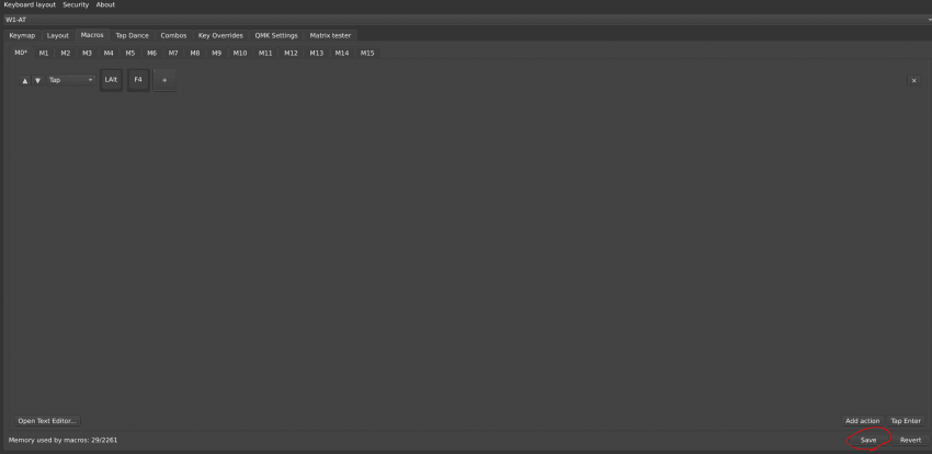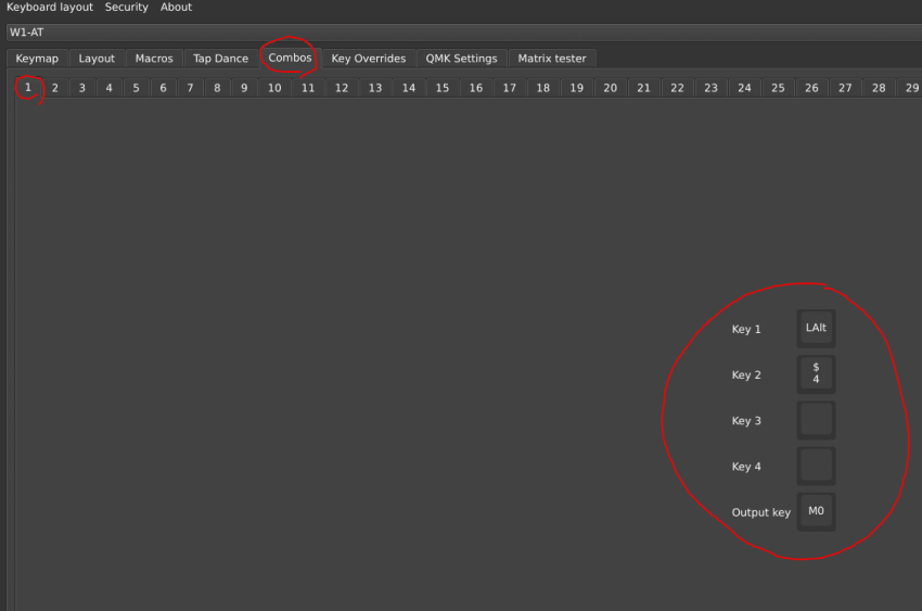 key1에는 alt, key2에는 4, Output key에는 아까 저장한 M0키를 넣습니다.