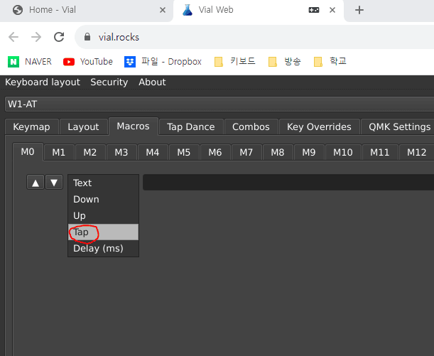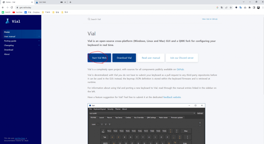 그러고 나면 Vial에서 매핑하는 창이 뜨는데