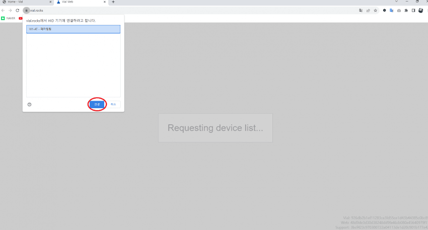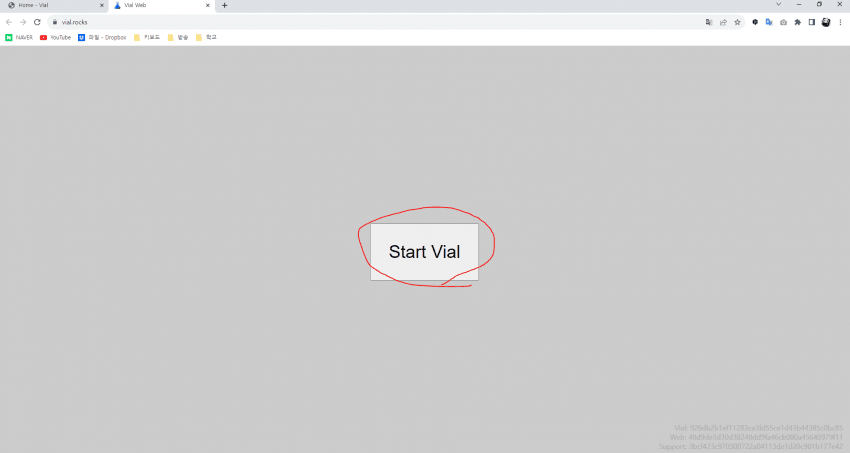 그리고 새로 켜진 창에서 Start vial을 누른 뒤 연결한 pcb(키보드)를 클릭하여 완료를 눌러주면 됩니다.