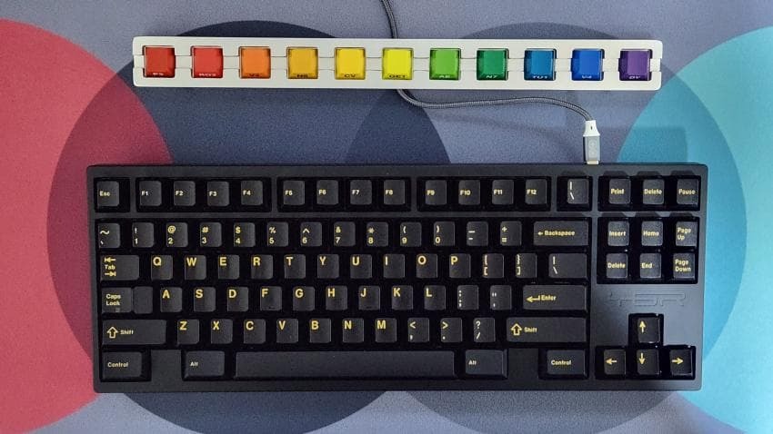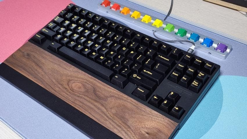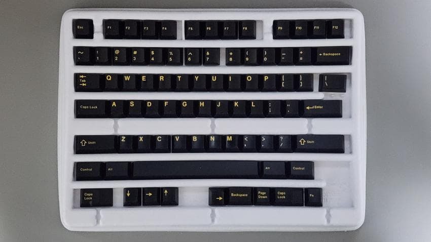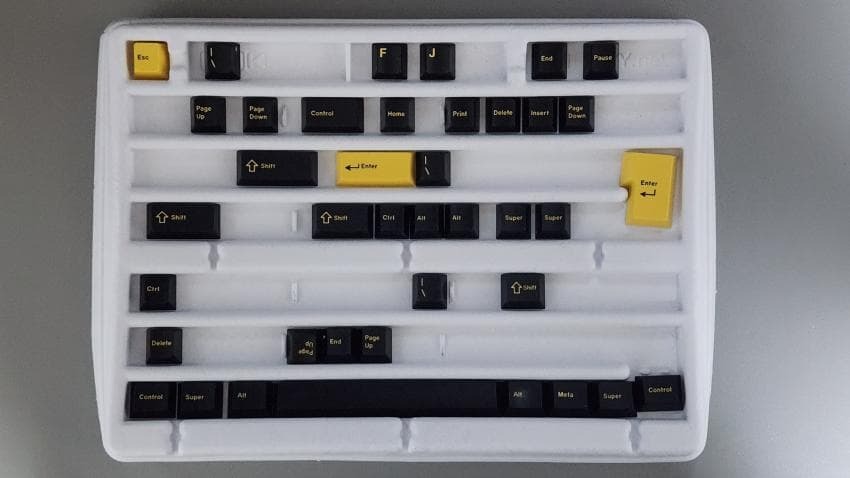 베이스킷에 계단식 Caps Lock 창키캡이 포함되어 있고, 렌더와 달리 실제 판매 제품에서는 ISO엔터가 노란색으로 들어있습니다.