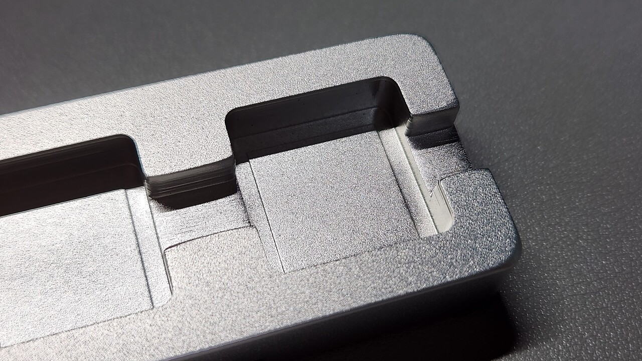 왼쪽에 파여있는 구명 두개는 아노다이징을 위해 고리 걸도록 파놓은 구멍입니다. 이 부분의 장점은 추후 원하는 하우징과 매칭하여 재아노다이징이 가능하다는 점이 좋은 장점이 될 것 같습니다.