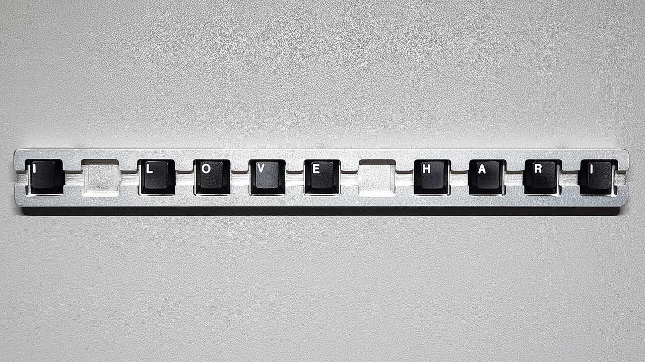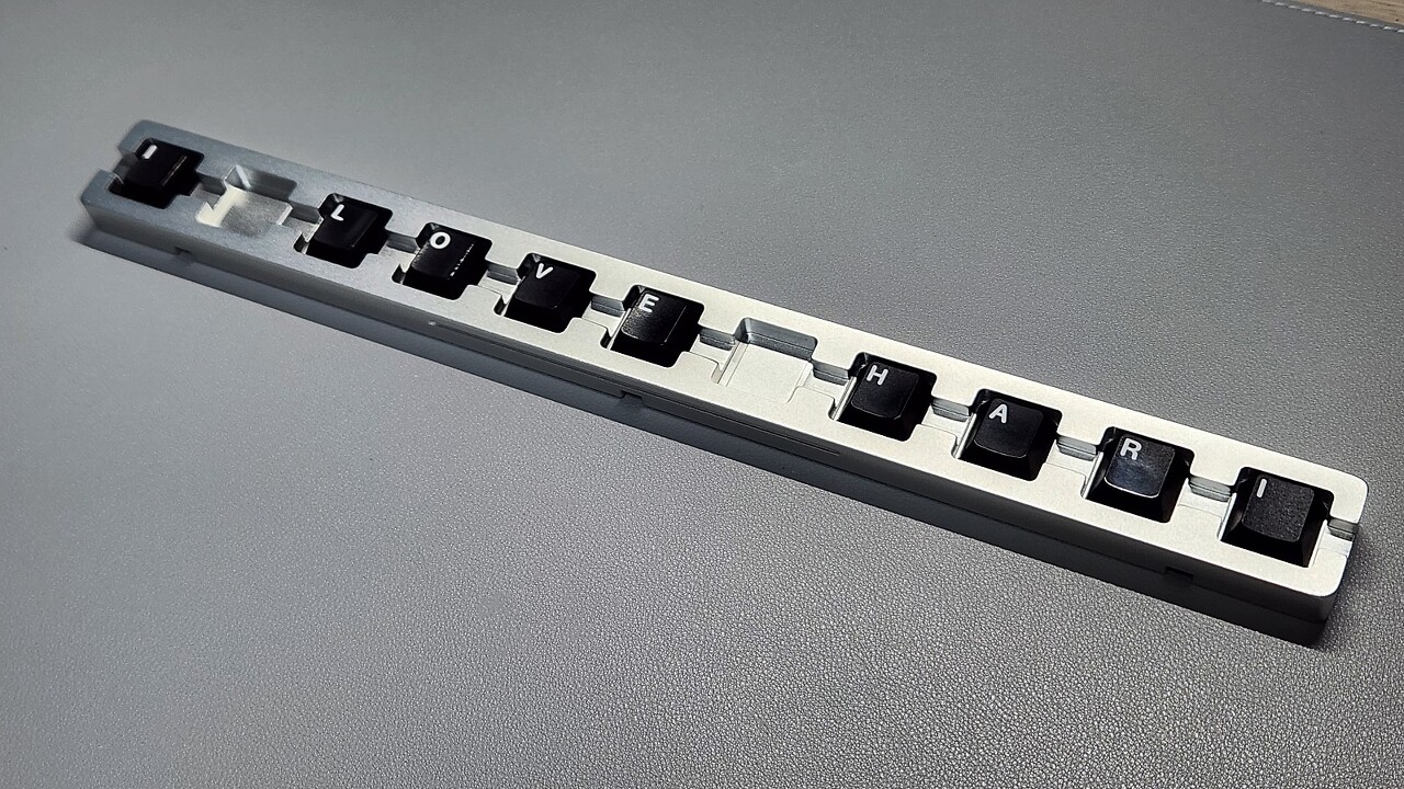 먼저 GMK WOB 키캡을 이용하여 'I LOVE HARI'를 적어보았습니다.