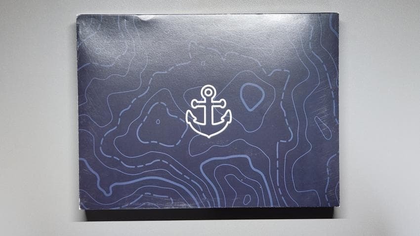 슬리브에는 네이비 색상에 등고선이 그려져 있고 뒤에는 닻이 그려져 있습니다.