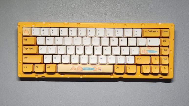 키캡은 치즈 컨셉의 염료승화 MDA 높이 PBT키캡으로
