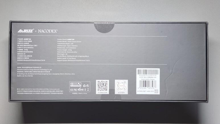 스위치는 kailh box yellow cheese switch로 내부 스위치까지 컨셉을 따르고 있습니다. 키압은 45g으로 굉장히 가볍습니다.