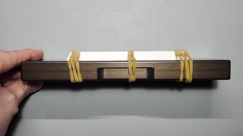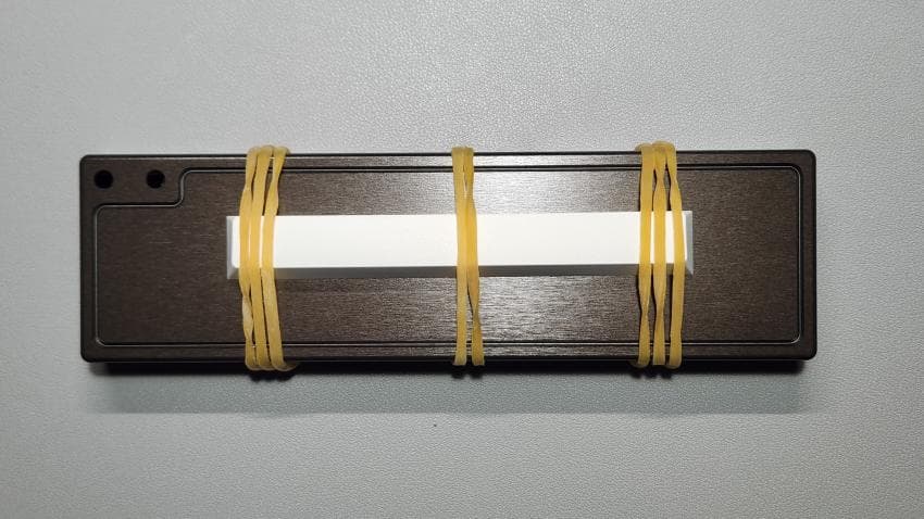 먼저 키캡을 패럴블럭 위에 올려 놓은 뒤, 고무줄로 평평하게 핀 후 고정을 해주었습니다.