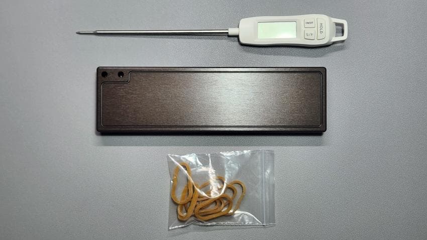 패럴블럭(혹은 평면도가 높은 제품), 온도계, 고무줄(또는 벨크로)가 필요합니다.