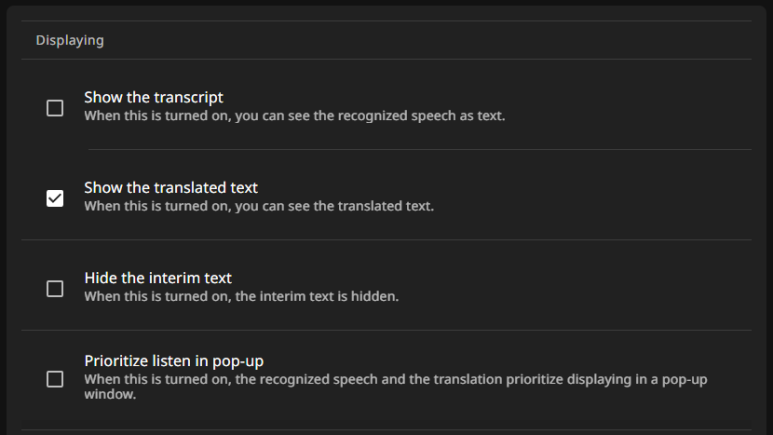 내가 한국어로 말했을 때 자동으로 영어로 번역이 되며 자막이 작성되기를 기대합니다.