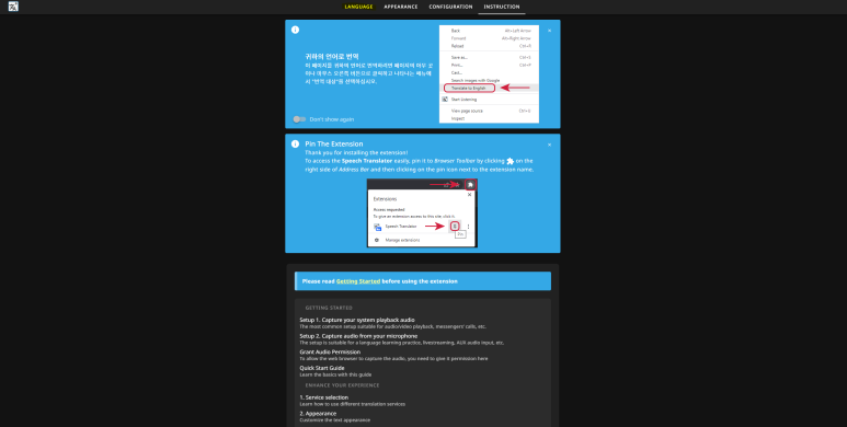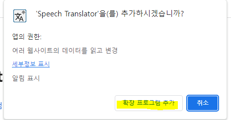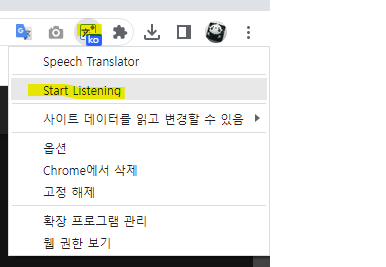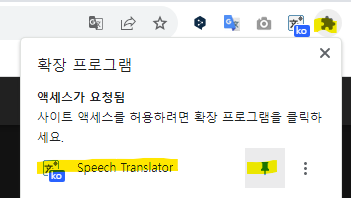 확장프로그램에서 Speech Translator를 고정하고,
