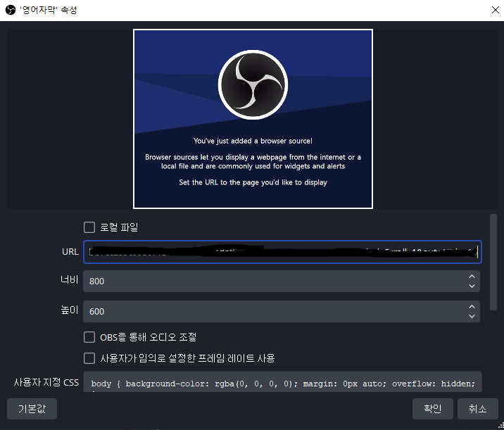 그다음 OBS에 들어가서 소스-브라우저 캡처를 만들어 주신 뒤,