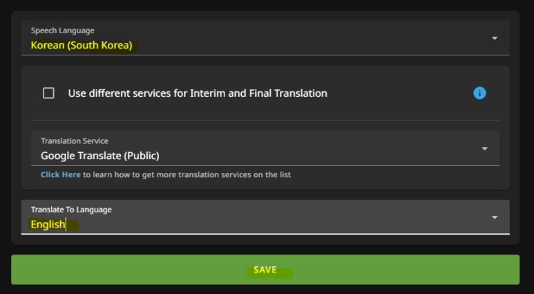 저는 한국말을 영어로 번역할 것이기 때문에 아래와 같이 변경해주었습니다.