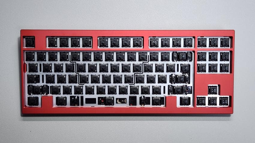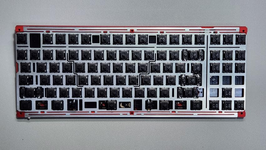 보강판은 1T Proto, 스위치는 다신흑, 키캡은 gmk 레드얼럿입니다.