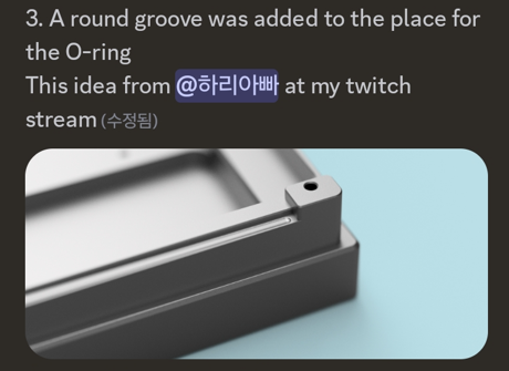OG버전에서 빌드시 바이톤 오링이 자꾸 빠져 불편함이 있었는데, 오링이 잘 흘러내리지 않게 오링을 고정하는 홀이 생겨났습니다.