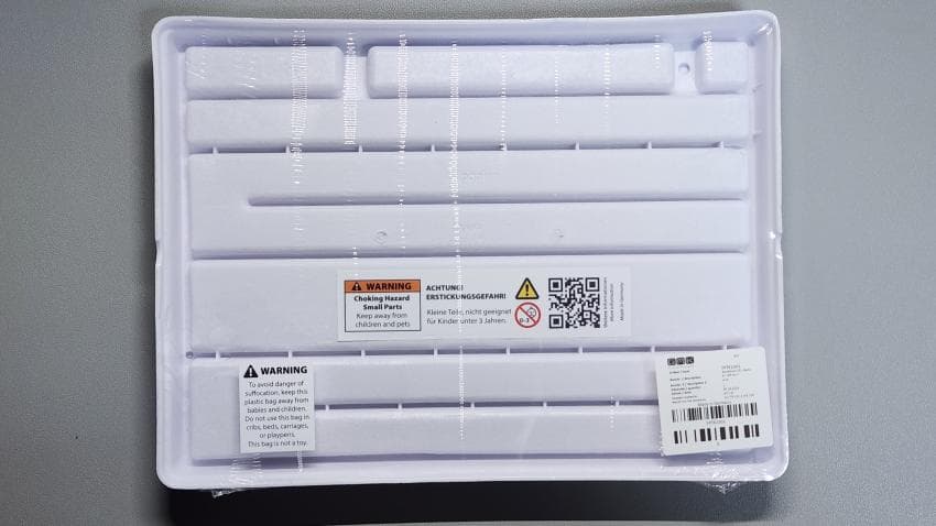 뒷면도 단순하고 주의사항과 모델명, 바코드가 적힌 스티커가 붙여져 있습니다.