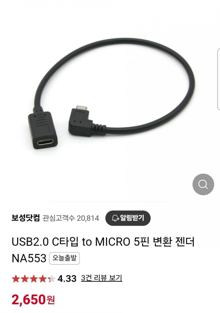 기판의 커넥터는 MICRO 5핀을 사용하게끔 되어 있습니다.