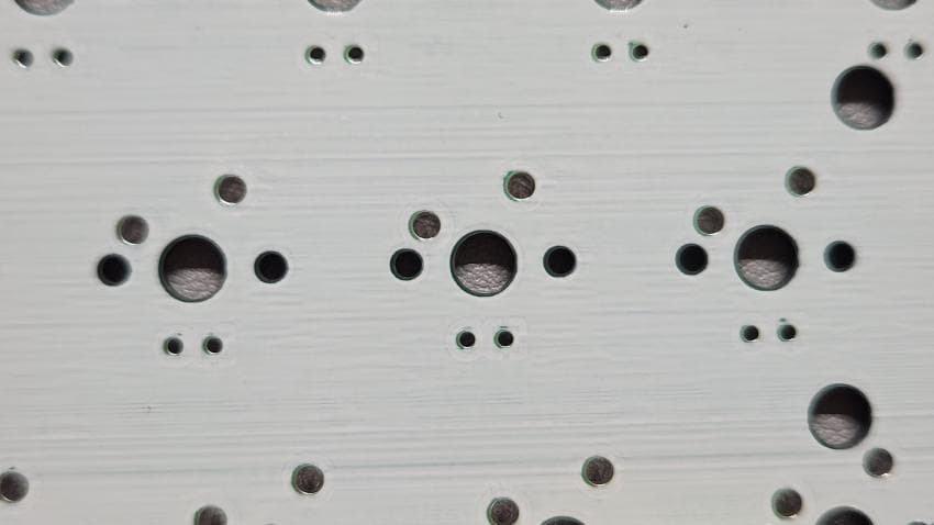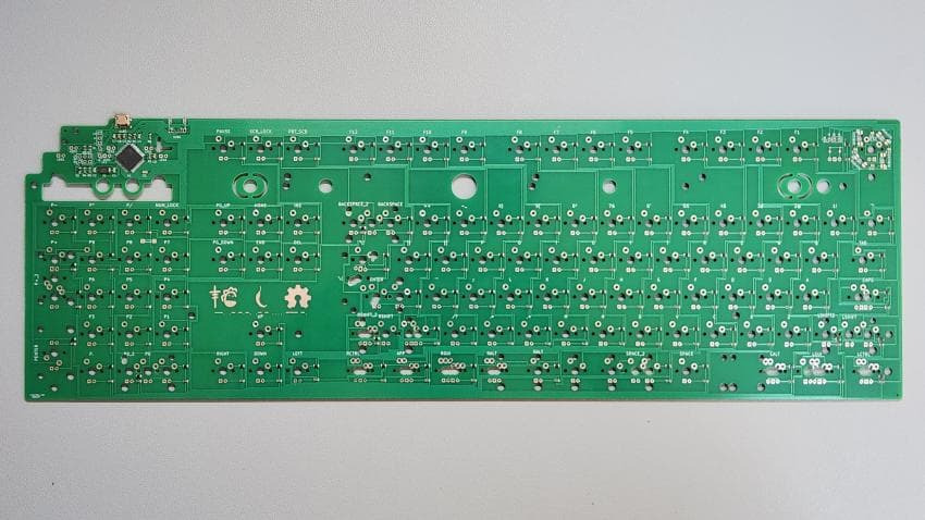 MX기반의 스위치를 끼울 수 있는 구멍이 뚫려있고, LED도 추가로 달 수 있게 되어있습니다.