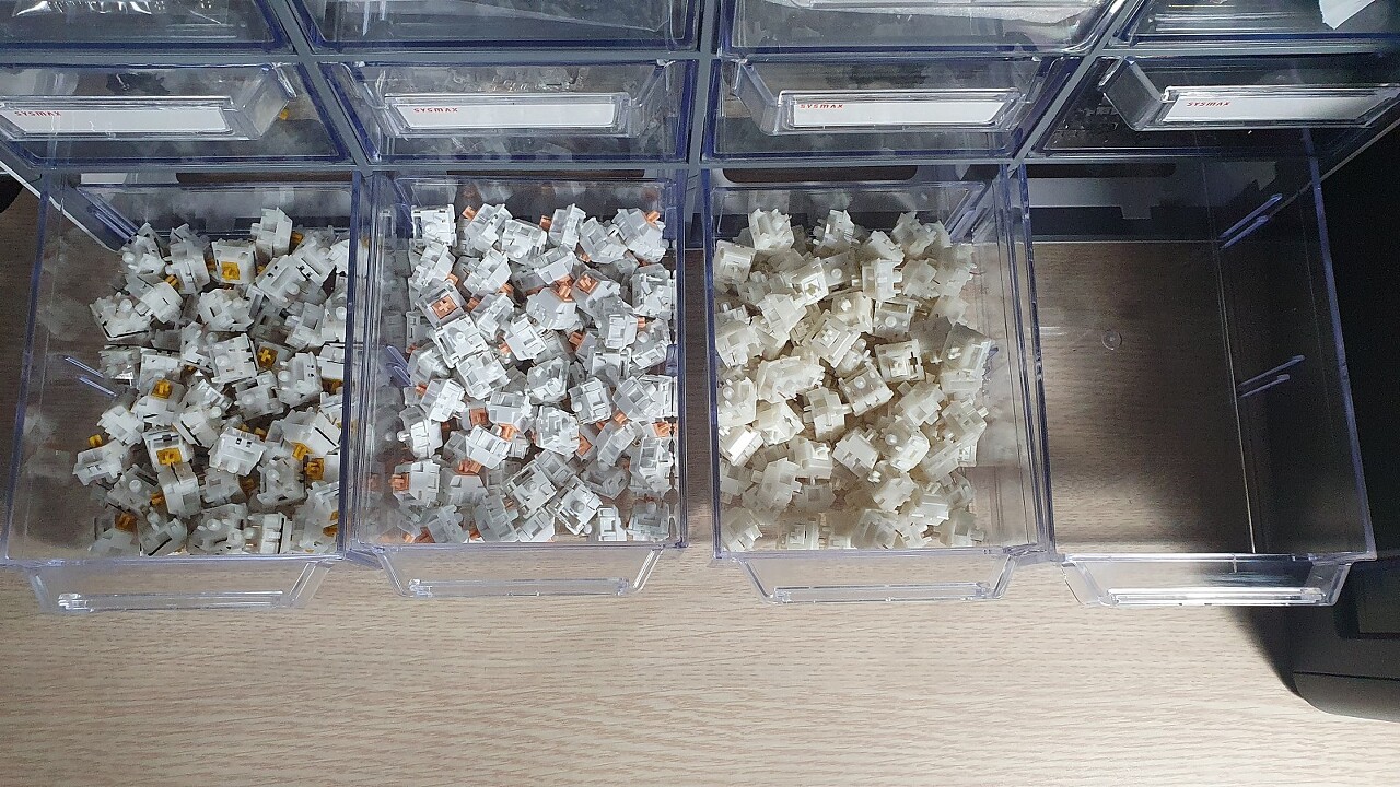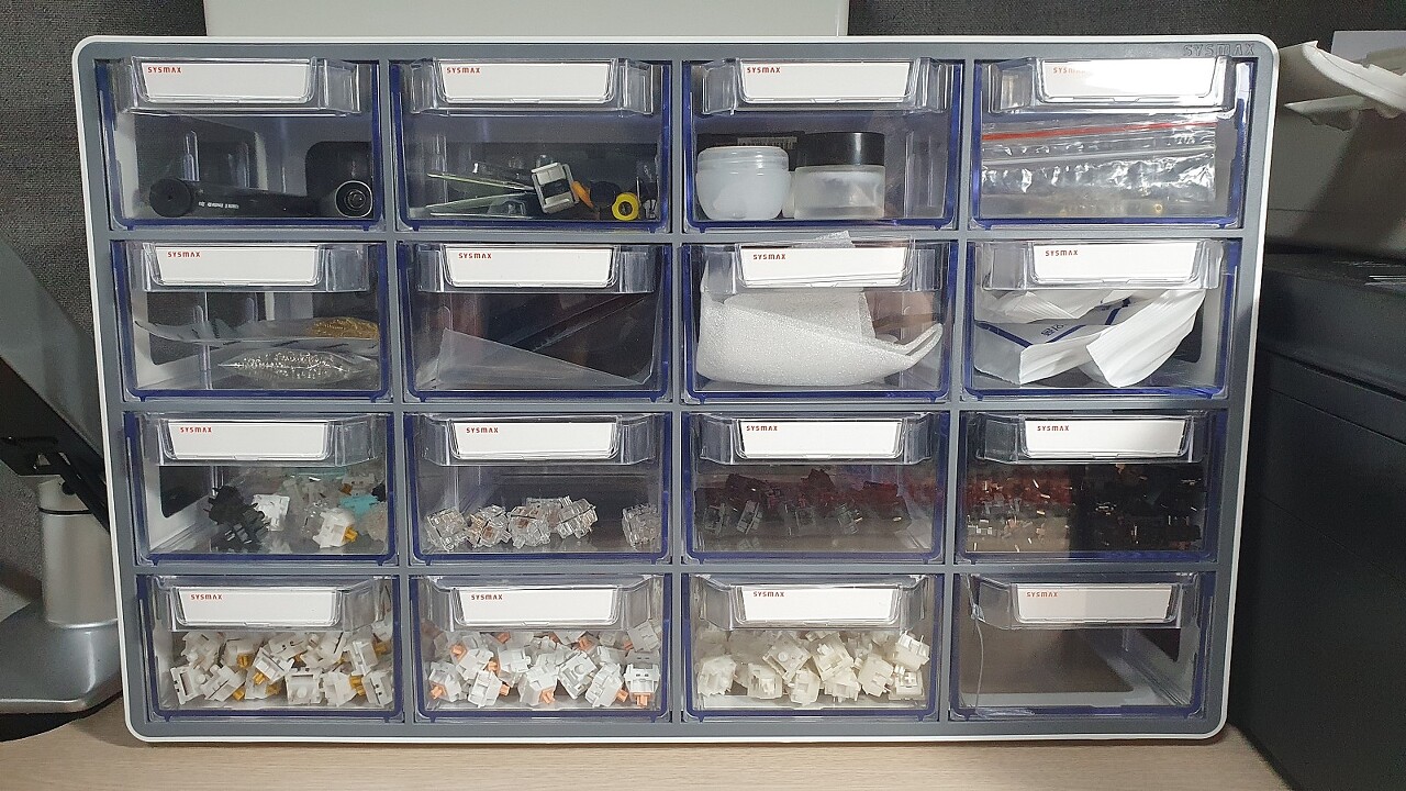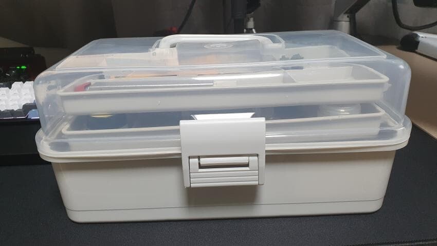 저는 원래 윤활도구들과 스위치들을 다이소에서 구입한 3단 수납함에 보관하고 있었습니다.