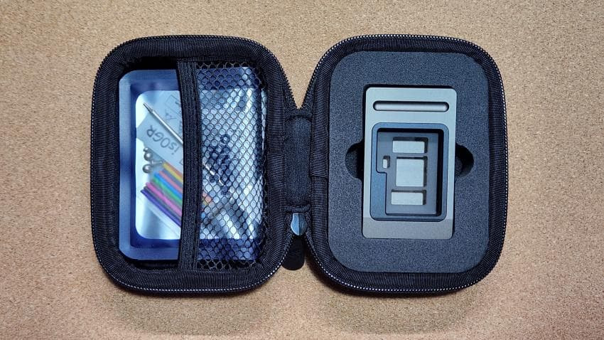 하드한 케이스에 제품 및 구성품이 들어가 있습니다.