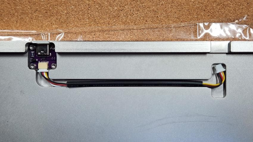 상판을 하판 위에 덮은 뒤 하판에 4개의 나사를 조여줍니다.(상단 긴 나사, 하단 짧은 나사)