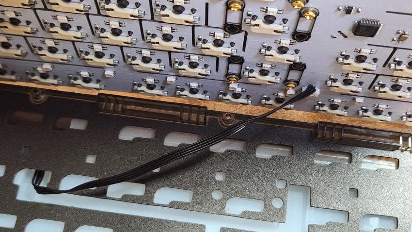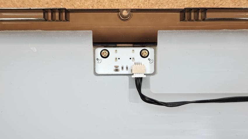 기보강을 JST커넥터를 이용하여 연결을 해준 뒤, 하부 하우징 위에 위치에 맞추어 올려줍니다.