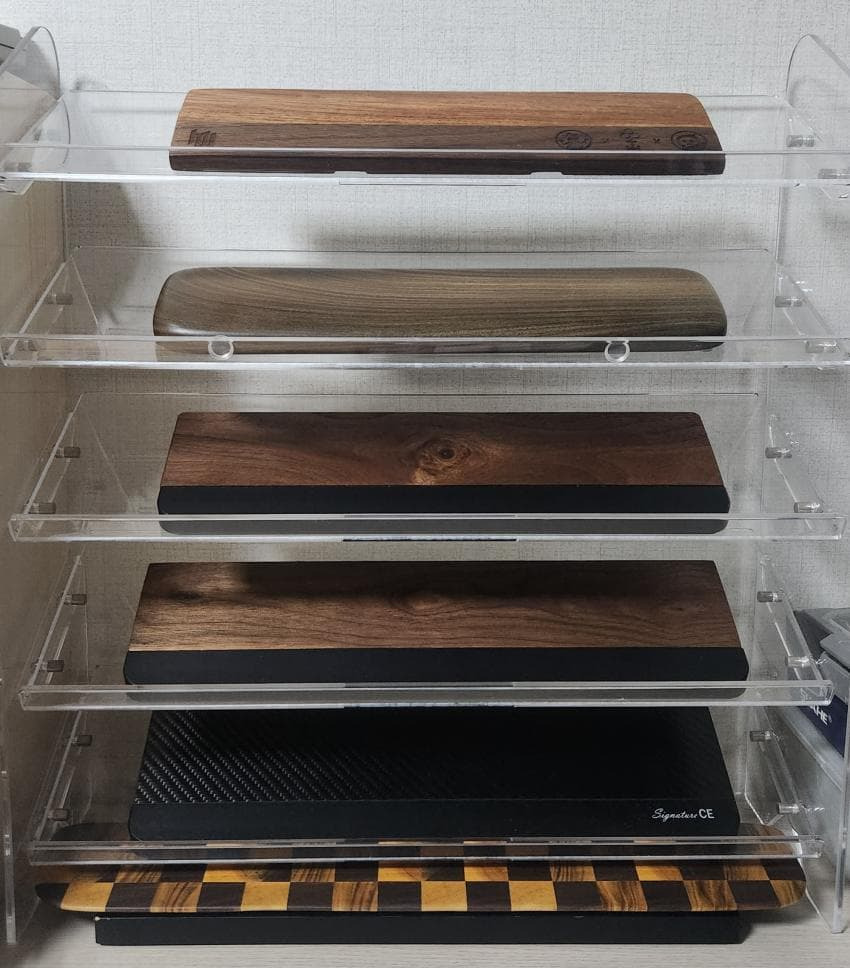 우선 아크릴 이외에는 플라스틱 소재로 된 팜레스트가 거의 없었고,