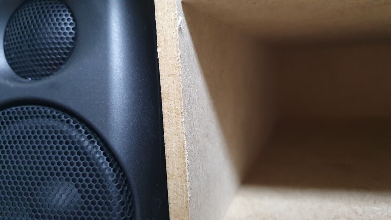 제가 키보드 보관함을 가장 설치하고 싶었던 장소는 모니터 아래 스피커 사이의 공간이었습니다.