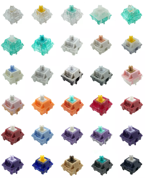 fanghu의 hallow Lake Axis(58g), 스웨그키의 bubble(65g 프로그레시브), GEON의 geon스위치(60g 2단), GOJU X TECSEE safety(65g 2단) 스위치가 있습니다. 이들은 하우징 재질와 금형은 다 같고, 스프링만 다른 것으로 알려져 있습니다.