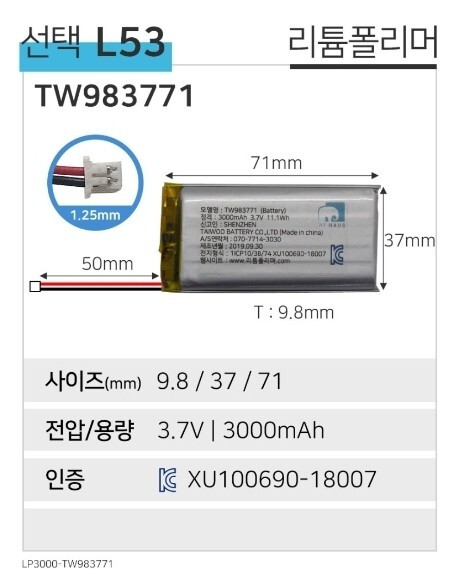그래서 9.8x37x71크기의 3000mAh 배터리를 배송비 포함 10,300원에 구입하였습니다.