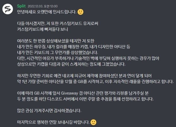 GB에 앞서 디스코드(동물의 왕국), 디시인사이드 기계식키보드갤러리(기키갤), 네이버카페 KEYFAM(키팸)을 통하여
