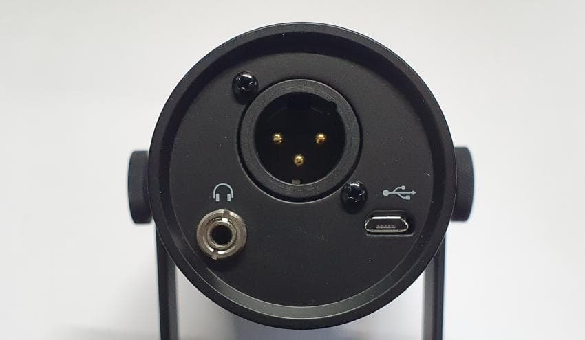 후면부에는 XLR 포트와 모니터링을 위한 이어폰 3.5포트 USB b 케이블 포트가 있습니다.