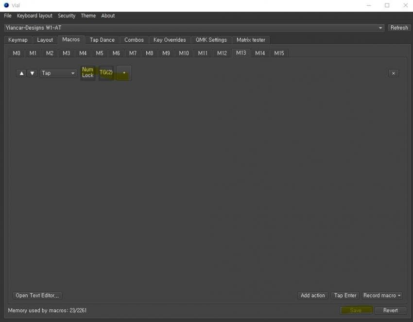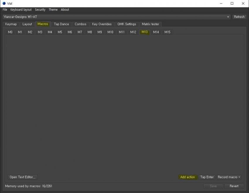방법은 Macros탭에서 원하는 매크로 번호를 누른 후 'add action'버튼을 눌러줍니다.