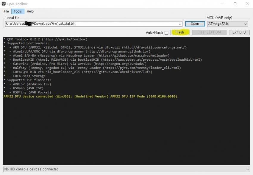 qmk_toolbox를 실행시켜줍니다.(없으신 분들은 따로 설치하셔야 합니다)