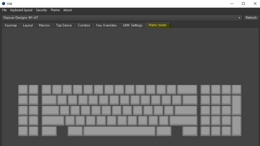이후 'Matrix tester'에서 키가 올바르게 작동하나 확인해줍니다.