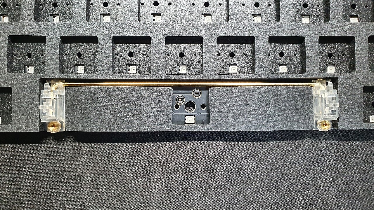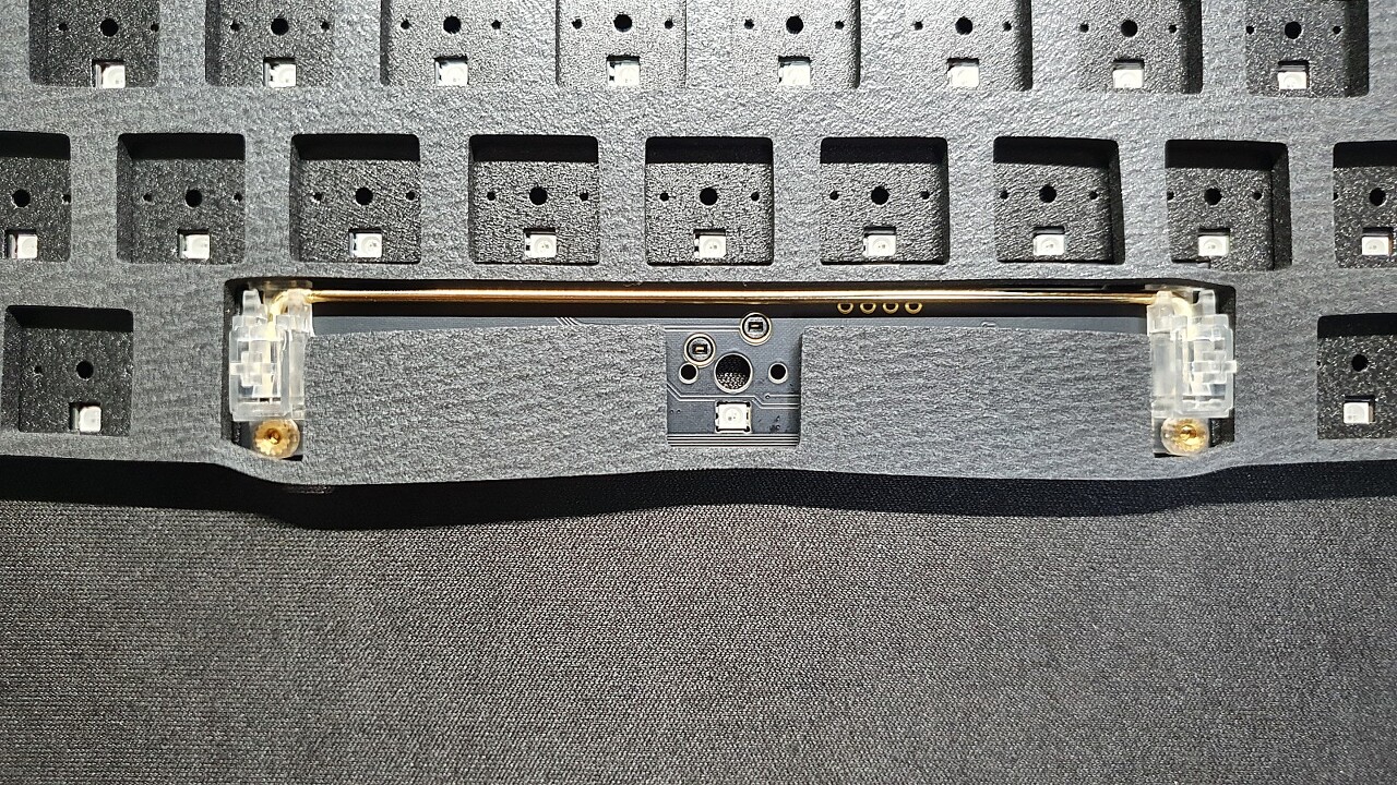스페이스바 스테빌라이저와 흡음재가 살짝 간섭이 있어서, 가위로 제단하여 올려주었습니다.