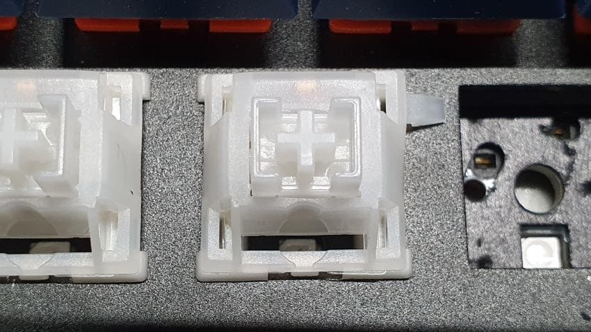 100개 기준 핫스왑 기판에 체결했을 경우 접점부 소리가 3~4개 정도 올라왔고,